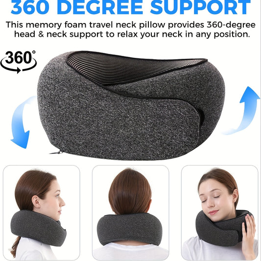 Comfort Travel Neck Pillow | Ergonomic Design for Airplanes - Breathable Memory Foam with Washable Cover, Perfect for Office & Car Naps, Grey